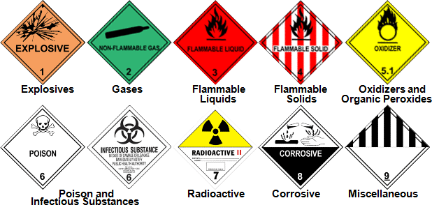 Miscellaneous Dangerous Goods, Insecticides, Weed Killers Wet Cell Batteries, Acids & Alkalies, Apparatus containing Mercury (thermometers), Lithium Batteries, Self Inflating life jackets, Dry Ice, Magnetized Materials